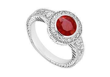 Ruby and Diamond Engagement Ring : 14K White Gold - 0.75 CT TGW